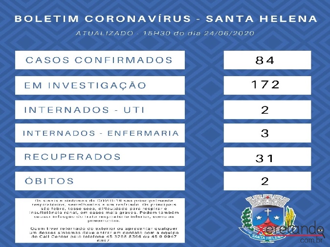 Na tarde desta quarta-feira (24), a Secretária de Saúde divulgou o novo boletim do Coronavírus, onde aponta que a cidade conta com 84 casos positivos da doença. Desses casos, 31 já estão recuperados.