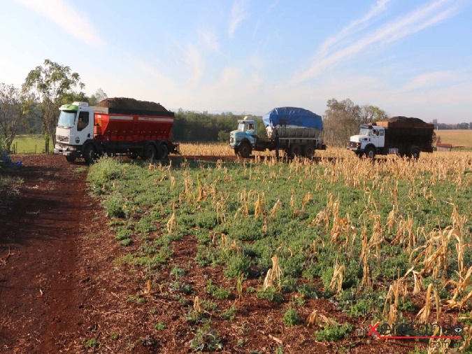 Nos próximos dias também será iniciada a distribuição de calcário que, da mesma forma que a cama de aviário, é aplicado diretamente na lavoura.