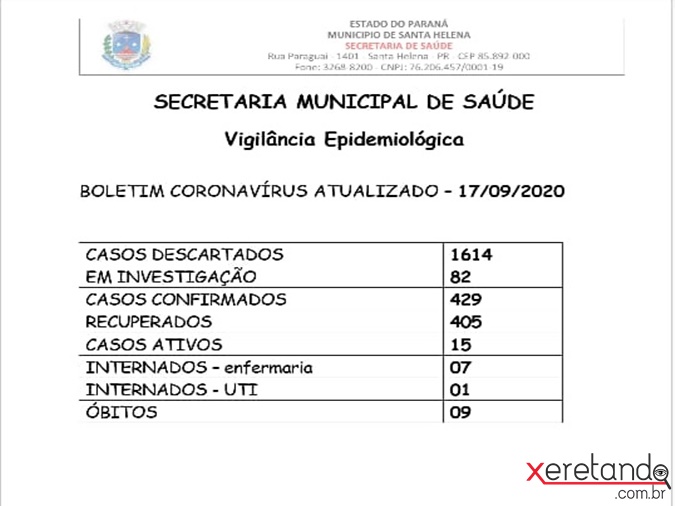 Na tarde desta quinta-feira (17), a Secretaria de Saúde divulgou o novo boletim do Coronavírus, onde aponta que o município conta com 429 casos positivos da doença, sendo considerados casos ativos 15.