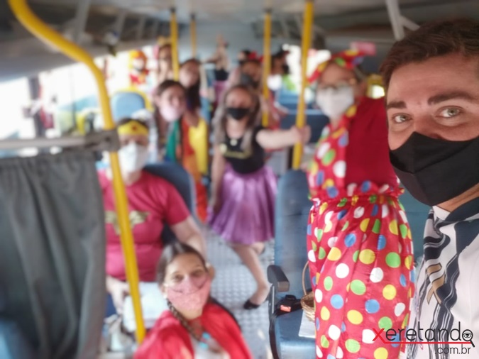Vestindo-se "à caráter", eles levaram atividades, mimos, música, alegria e muita vontade de rever, mesmo que por um pequeno momento, seus queridos alunos.
