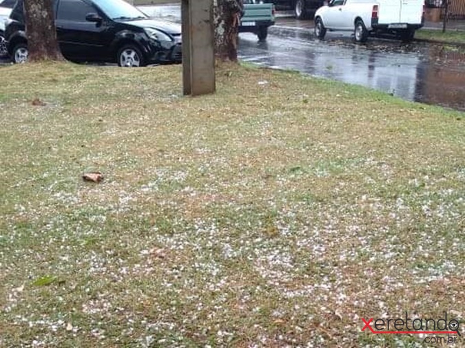 Em uma empresa na Av. 24 de Outubro, parte do telhado caiu e atingiu um veículo. Segundo relato do motorista do veículo, que é prestador de serviços, ele saiu de Matelândia e seguia para Serranópolis do Iguaçu e procurou abrigo no local quando começou a chuva de granizo. Por sorte ninguém se feriu.