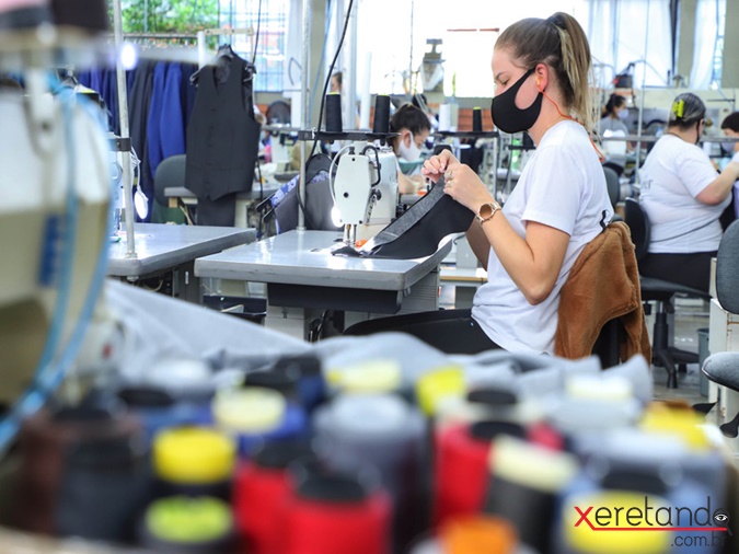 “Já retomamos nossa produção normal. Produzimos aqui 150 mil peças por mês para três marcas próprias: Docthos, Guilherme Soul e Private Label”, diz. Além disso, a fábrica produz peças para outras marcas como Reserva, Foxton e Renner.