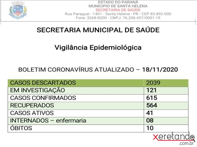 Na tarde desta quarta-feira (18), a Secretaria de Saúde divulgou o novo boletim do Coronavírus, onde aponta que o município está com 615 casos positivos da doença, sendo considerados casos ativos 41.