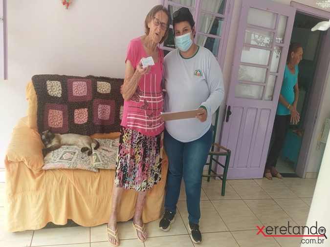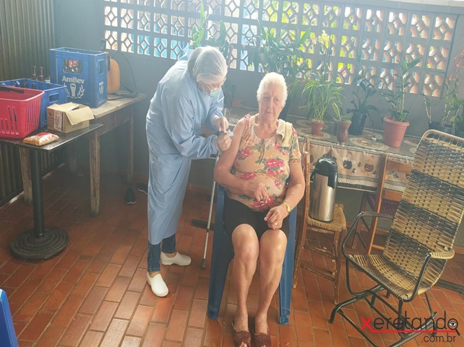 A primeira idosa a receber a vacina nesta tarde, foi Ermelinda Maria Massaneiro, atualmente com 91 anos. Lembrando que posteriormente será necessária a aplicação da segunda dose do imunizante.