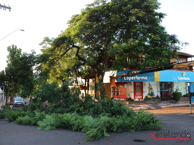 Na manhã desta quinta-feira (08), a ação ocorreu na Avenida Brasil esquina com a JM Madalozzo, onde uma árvore de grande porte estava oferecendo riscos e teve alguns galhos retirados para evitar maiores danos.