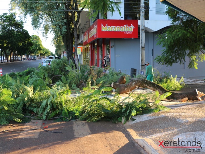 O trabalho foi realizado pelo departamento de Urbanismo que contou com o suporte da Defesa Civil. Após a poda, as ruas foram lavadas para eliminação dos resíduos de madeira.