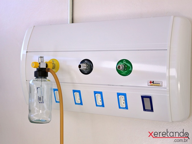 - Régua de gases de parede, para assistência respiratória com abertura frontal basculante, possui válvula de impacto de duplo estágio;