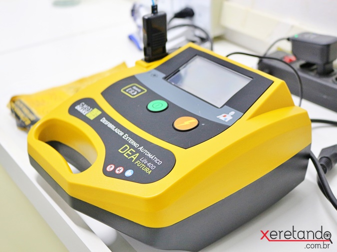 - Cardioversor com módulo DEA, tipo bifásico, comando nas pás ajuste, carga e disparo, possui memória de ECG e impressora;
