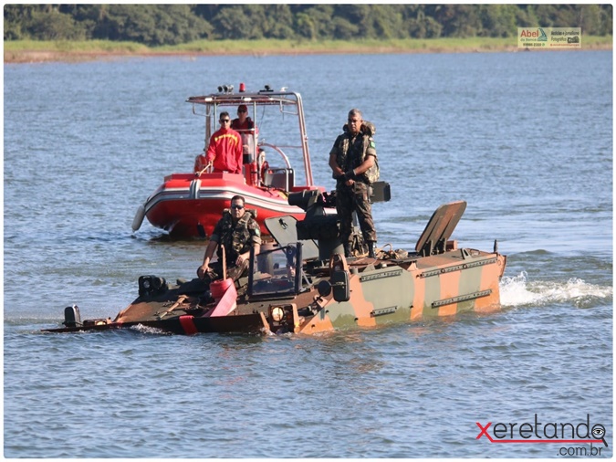 Novos motoristas de blindados anfíbios do exército fazem treinamento no Lago de Itaipu