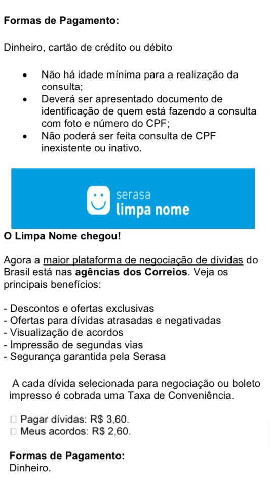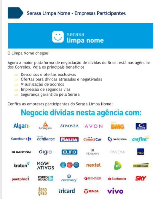 Correios: deixei seu nome positivo através do Serasa Limpa Nome