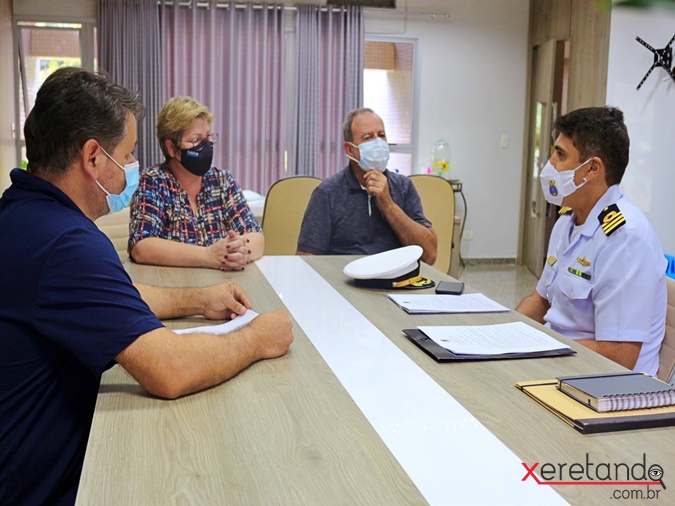 Na tarde desta terça-feira (12), uma visita ilustre contemplou o Gabinete Oficial. Comandante Freitas e o Tenente Oliveira, da Marinha do Brasil, realizaram uma visita à prefeita Cleide Prates e ao vice-prefeito Lindolfo Martins Rui a fim de propor um convênio com o Município por meio da Capitania Fluvial do Rio Paraná. Também estiveram na reunião o Secretário de Turismo, Valdecir Bittencourt, o Diretor de Turismo, Amauri do Nascimento e o Assessor Jurídico, André Spies.