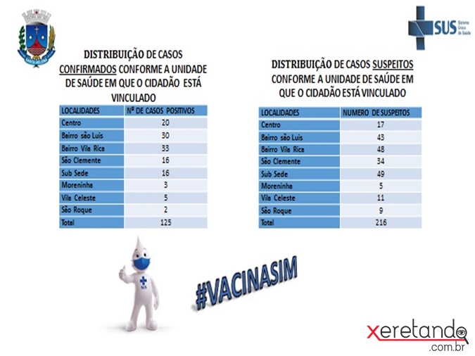 Na tarde desta segunda-feira (17), a Secretaria de Saúde divulgou o novo boletim do Coronavírus, onde aponta que o município está com 2568 casos positivos da doença, ou seja, sendo considerados casos ativos 125.