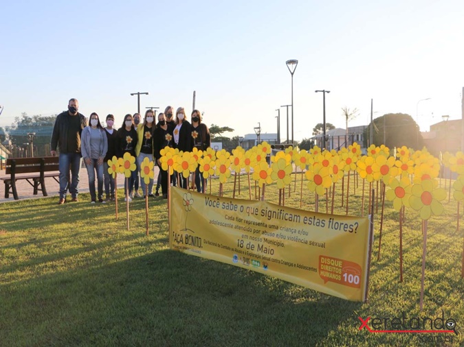 Conforme a organizadora do ato de hoje, Helena Filipiak, o plantio de 94 flores simboliza as 94 vítimas de abuso e exploração sexual atendidas pelo Creas de março de 2018 até o presente momento: "Hoje é um marco sobre a discussão deste assunto e o que a rede de proteção pretende é conscientizar que é dever e obrigação de todos nós proteger as nossas crianças," destaca.