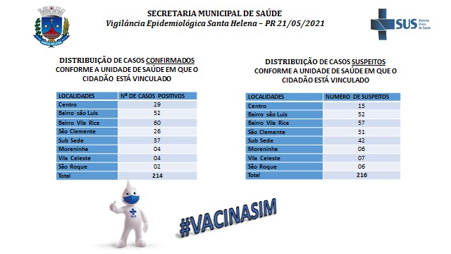 Na tarde desta sexta-feira (21), a Secretaria de Saúde divulgou o novo boletim do Coronavírus, onde aponta que o município está com 2699 casos positivos da doença, ou seja, sendo considerados casos ativos 214.