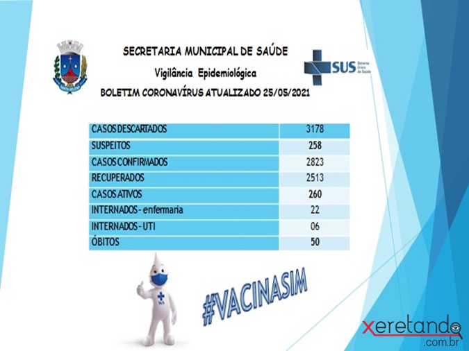 Na tarde desta terça-feira (26), a Secretaria de Saúde divulgou o novo boletim do Coronavírus, onde aponta que o município está com 2823 casos positivos da doença, ou seja, sendo considerados casos ativos 260.