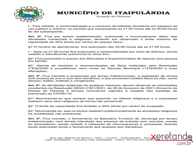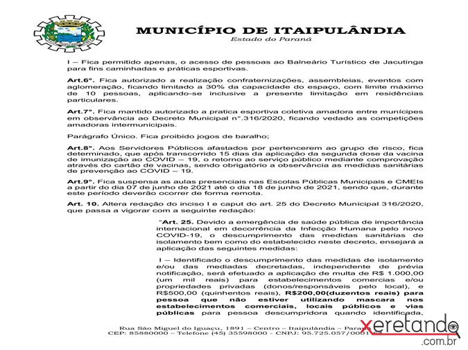 Novo Decreto adota medidas mais rígidas no enfrentamento à Covid em Itaipulândia