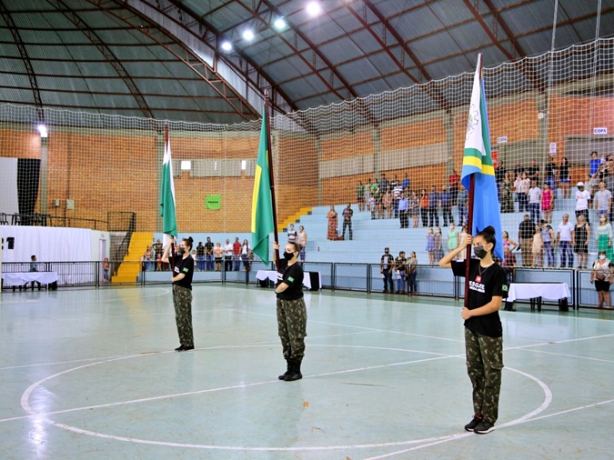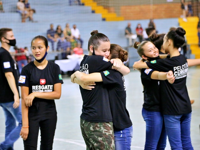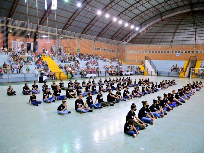 O ato que aconteceu no Ginásio de Esportes Irineu Luiz Friedrich, teve momentos de emoção e civismo com os Guarda Vidas Mirins realizando manobras de desfile e ações captadas no decorrer do ano.