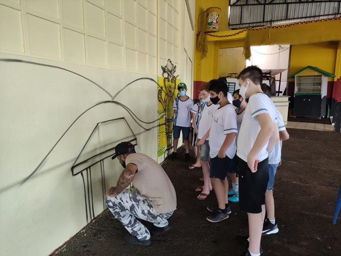 Os alunos da Escola Aurélio Pilotto de Vista Alegre participaram na manhã desta terça-feira, 14 de dezembro de uma Oficina de Grafitagem que ocorre no Centro de Eventos de Missal. O Artista Isaac Souza de Jesus repassou informações importantes sobre a manifestação artística, ensino técnicas que podem ser utilizadas quando por executar a obra e demonstrou a diferença entre as tintas, apontando quais as recomendadas para não agredir o meio ambiente.