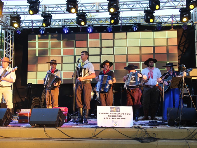 O evento foi promovido pelo departamento de Cultura com incentivo da Lei Federal Aldir Blanc, que contempla os músicos e outros artistas locais que foram afetados pela suspensão dos shows, bailes e festas durante a Pandemia.