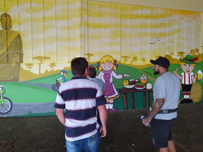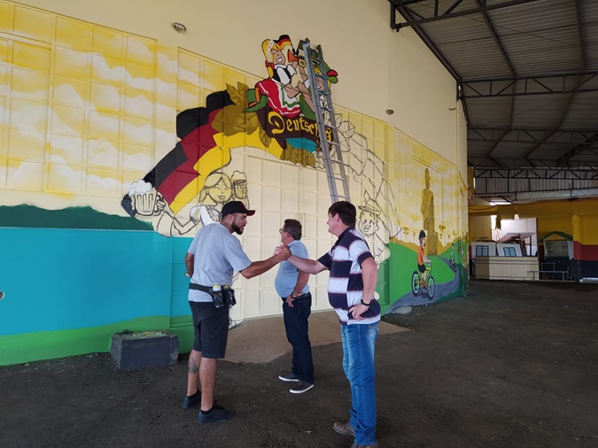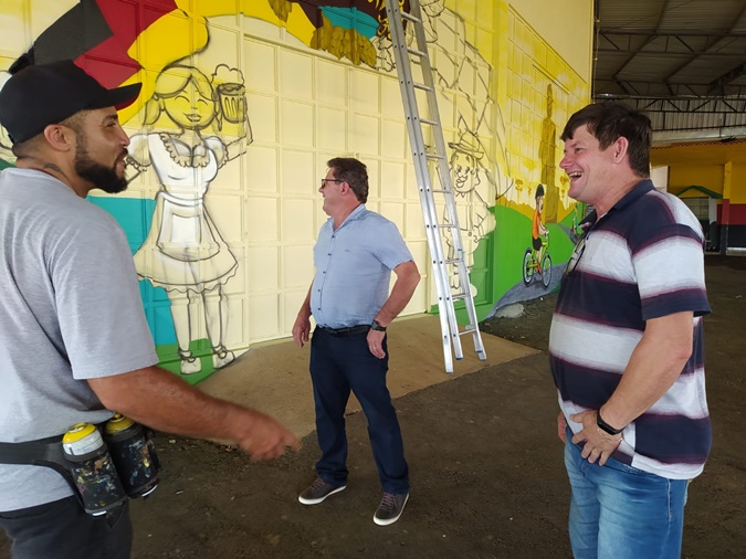 Após as oficinas ofertadas para alunos de Missal, e com o início da pintura feita pelos próprios alunos, Isaac Souza de Jesus está concluindo um belo trabalho no Centro de Eventos de Missal, local que recebe diversos eventos, entre eles o maior do município, a Deutsches Fest - Festa alemã.