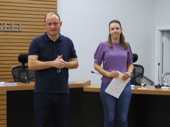 O prefeito Evandro Grade, o Zado e o vice-prefeito Dinho Maraskim estiveram presentes. Após um diálogo entre Legislativo e Executivo, foi decidido que o recurso seria entregue a Associação de Pais e Amigos dos Excepcionais – APAE de Santa Helena, para ampliação e reformas da entidade.