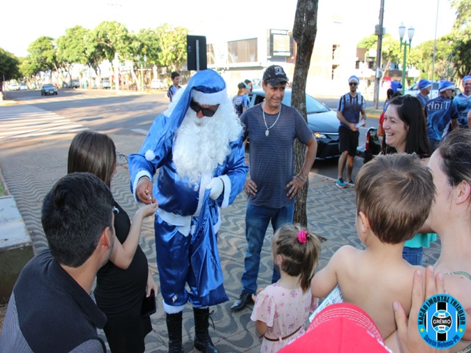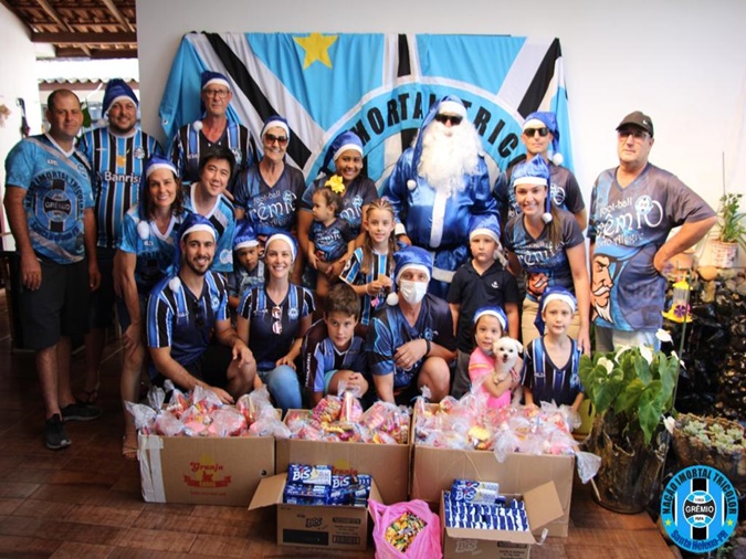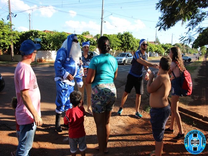 o Papai Noel Tricolor entregaram mais de 300 pacotes de doces para as crianças