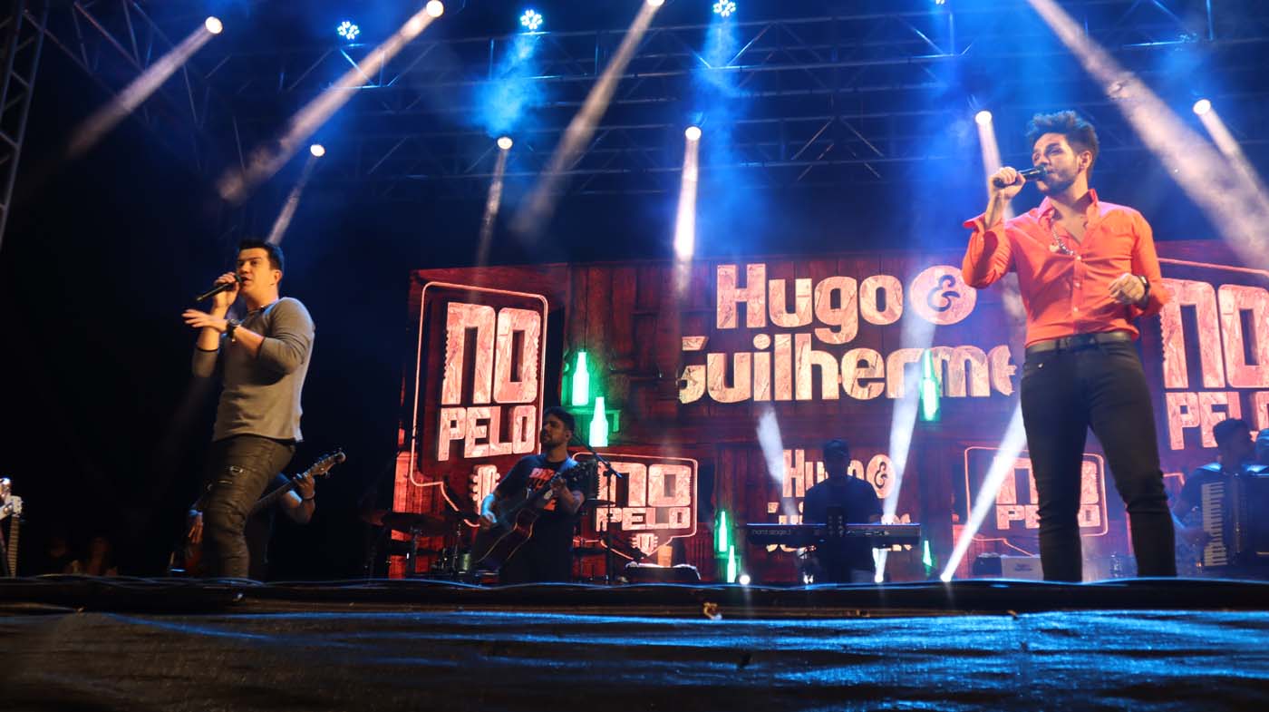 Na noite de ontem um grande público ocupou a orla da Praia Nova para acompanhar o show nacional da dupla Hugo e Guilherme, uma das últimas revelações do sertanejo no país.