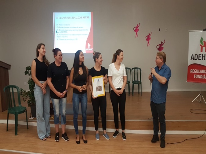 Na sequência, o prefeito Zado parabenizou a secretaria de Planejamento por colocar em prática a Lei do Reurb e oferecer aos moradores a possibilidade da documentação de suas propriedades: "Muitas transações imobiliárias eram feitas somente por contrato e agora, o Município juntamente com a Adehasc e Cartório de Registro de Imóveis que possui um papel muito importante neste processo, irá repassar as matrículas de cada imóvel," comemora.