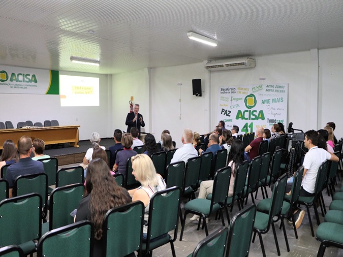 A Associação Comercial e Empresarial de Santa Helena (Acisa), promoveu nesta terça-feira (05) a palestra ‘Você é quem precisa ser? Como as pessoas “funcionam”, como aproveitar melhor os recursos e evitar as dores que cada um possui’. O palestrante foi Mauro Kozerski, profissional com formação em coaching, análise corporal e comportamental, parapsicologia e Programação Neurolinguística - PNL.