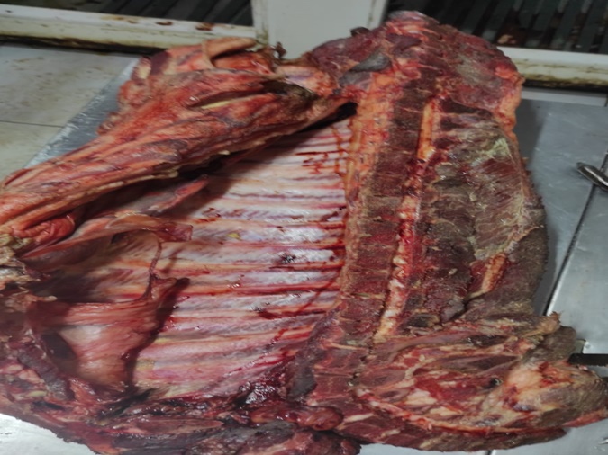 O proprietário não conseguiu comprovar a procedência de todos os produtos, podendo ser verificado que diversos pedaços estavam impróprios para consumo. A situação era perceptível visualmente. Inclusive, os relatos apontam que o ambiente era bem insalubre, com muitas moscas.
