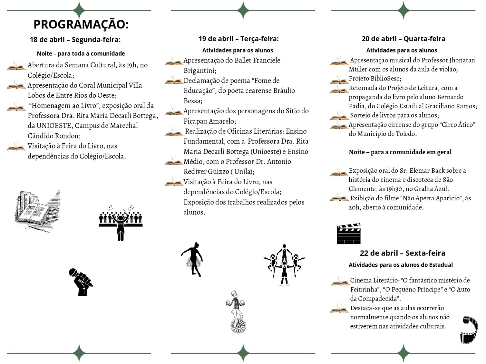 - ‘’Homenagem ao Livro’’ exposição oral da Professora Dra. Rita Maria Decarli Bottega, da UNIOESTE, campus de Marechal Cândido Rondon;