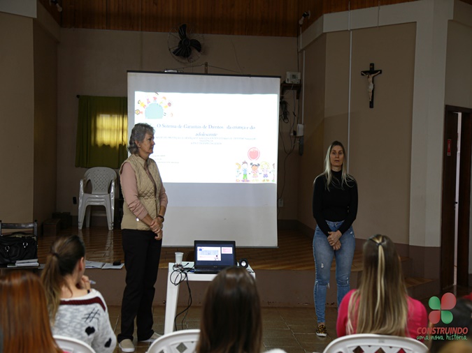 A capacitação foi elaborada visando melhor entender e conhecer as novas legislações que tratam do atendimento a criança e ao adolescente em situação de violência. O Prefeito Ferrari, vice Chenho e secretárias de Educação Clarice, Saúde Silvia e Assistência Social Rosani, estiveram no encontro.