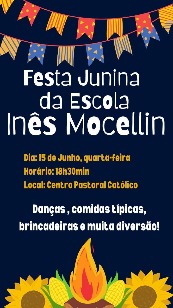 No dia 15 de junho acontece a Festa Junina da Escola Inês Mocellin, no Centro Pastoral Católico.