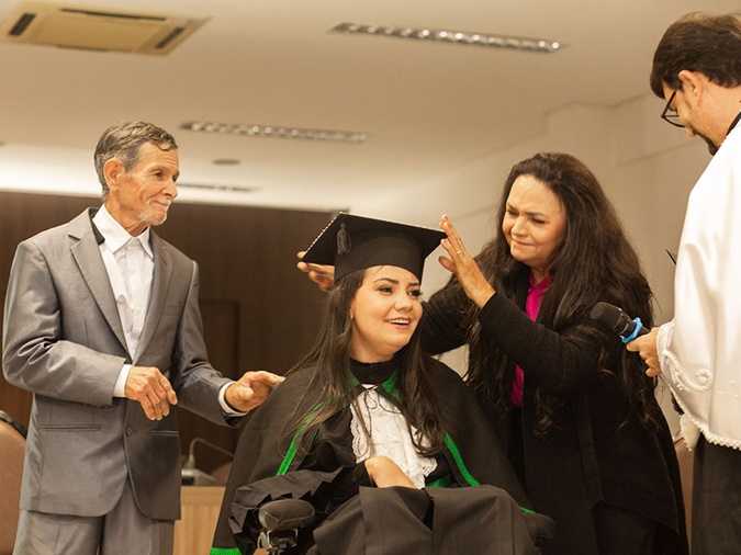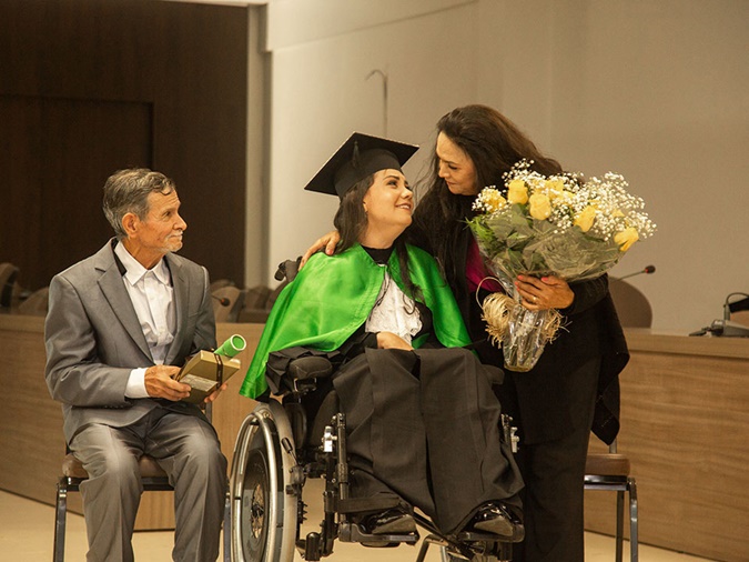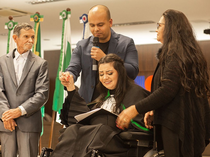 Primeira médica com tetraparesia do Brasil cola grau na Unioeste
