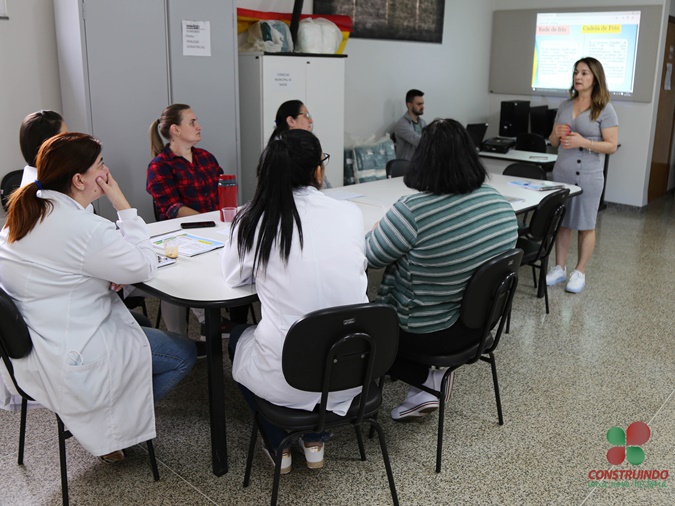 Trata-se de uma formação continuada, a fim de manter a atualização constante de todos os profissionais. O tema abordado pelo setor de epidemiologia do município, foi sala de vacina e rede de frio relacionado ao armazenamento das vacinas.