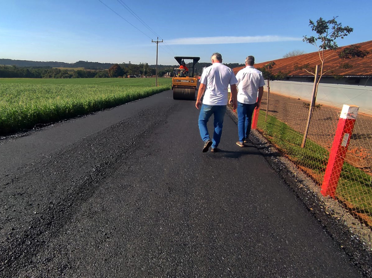 A empresa contratada está trabalhando em ritmo acelerado para concluir o mais breve possível esta importante obra que é a pavimentação asfáltica na linha Volta Gaúcha-Entre Rios do Oeste; utilizando materiais de alta qualidade, garantindo a durabilidade da pavimentação, tendo em vista que por estas vias circulam veículos pesados que transportam a produção.