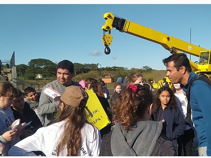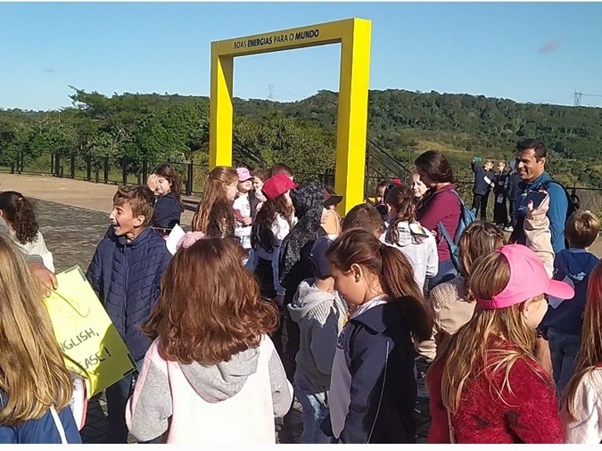 Na ocasião os alunos tiveram a oportunidade de conhecer à Usina Hidrelétrica de Itaipu, a maior usina geradora de energia limpa e renovável do planeta onde também interagiram com estrangeiros que ali estavam.