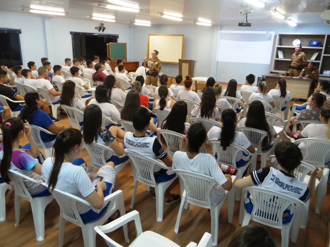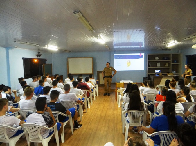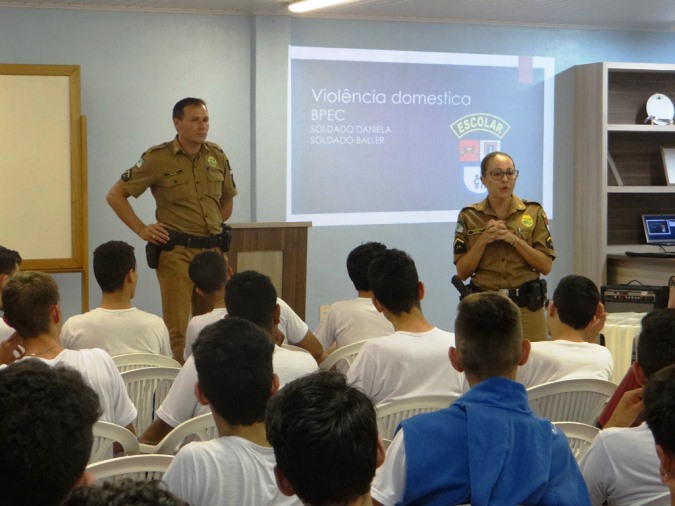Na noite desta segunda-feira (5), uma palestra sobre violência doméstica foi ministrada pelos soldados Lindomar Baller e Daniela Rosana Pereira do Batalhão de Patrulha Escolar Comunitária – BPEC, juntamente com o subcomandante da 4ª Companhia de Polícia Militar, Aspirante Maycon Leandro de Souza, aos alunos do 1º,2º e 3º ano do Colégio Castelo Branco em Santa Helena.