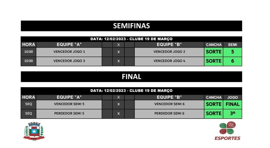 E no domingo já serão conhecidos os campeões da modalidade. A partir das 10h da manhã iniciam as disputas da semifinal. Logo em seguida, e medida que forem sendo conhecidos os finalistas, haverá a disputa do título e a disputa do 3º lugar. O Regionalito de Missal faz parte da programação dos 40 anos de emancipação.
