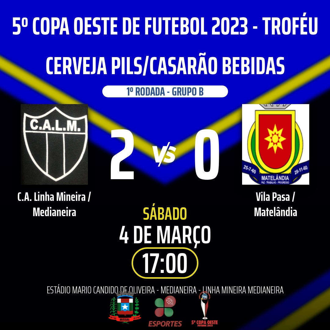 A próxima rodada ocorre nos dias 11 e 12 de março. Durante a semana o Departamento de Esportes de Missal, responsável pela organização da competição, irá divulgar os horários e os confrontos. A Copa Oeste está na 5ª edição e neste ano está em disputa o Troféu Casarão Bebidas Cerveja Pils.