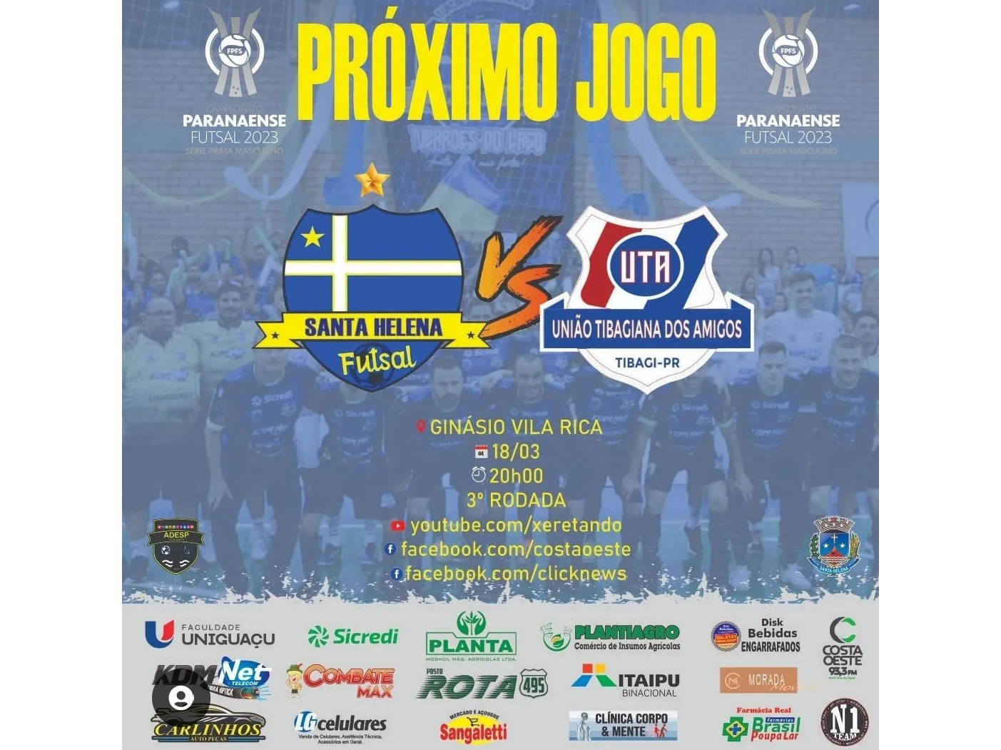 Os jogos do Santa Helena Futsal/Uniguaçu pelo Campeonato Paranaense 2023 – Série Prata estão sendo transmitidos ao vivo pelas mídias sociais através de um consórcio de veículos de imprensa, incluindo os sites Xeretando, Click News Web TV e a Rádio Costa Oeste, levando emoção aos torcedores.