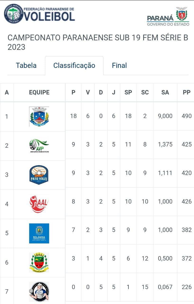 tabela e está na liderança, seguida de Palmas que é o 2º colocado com 9. Para o