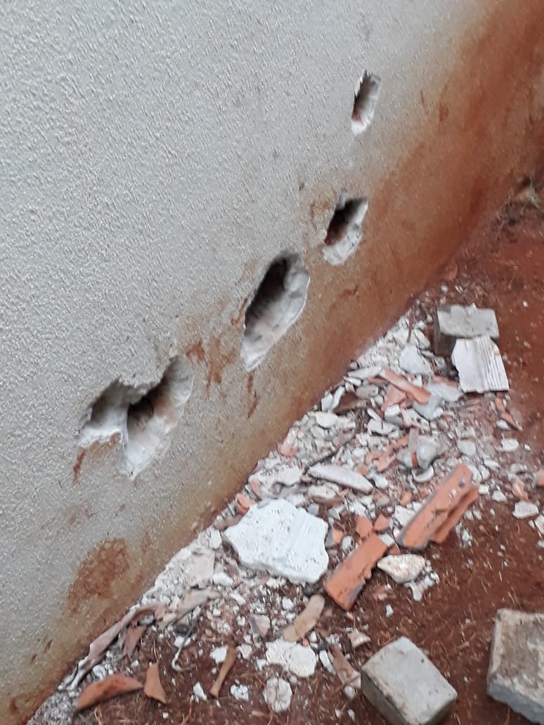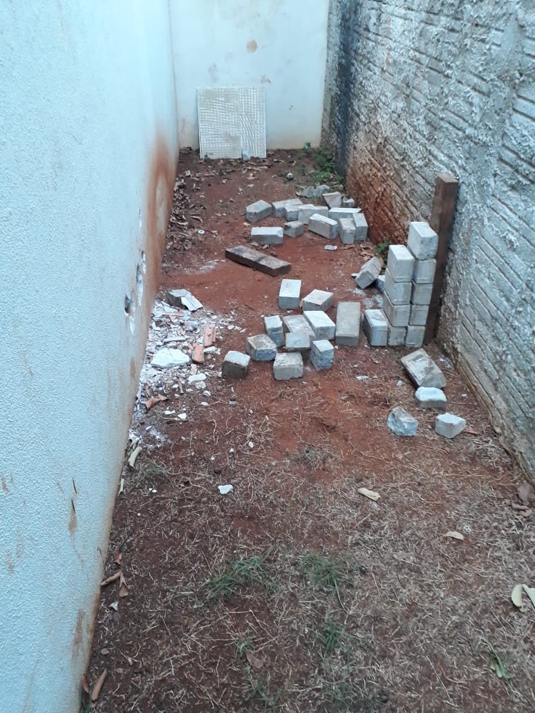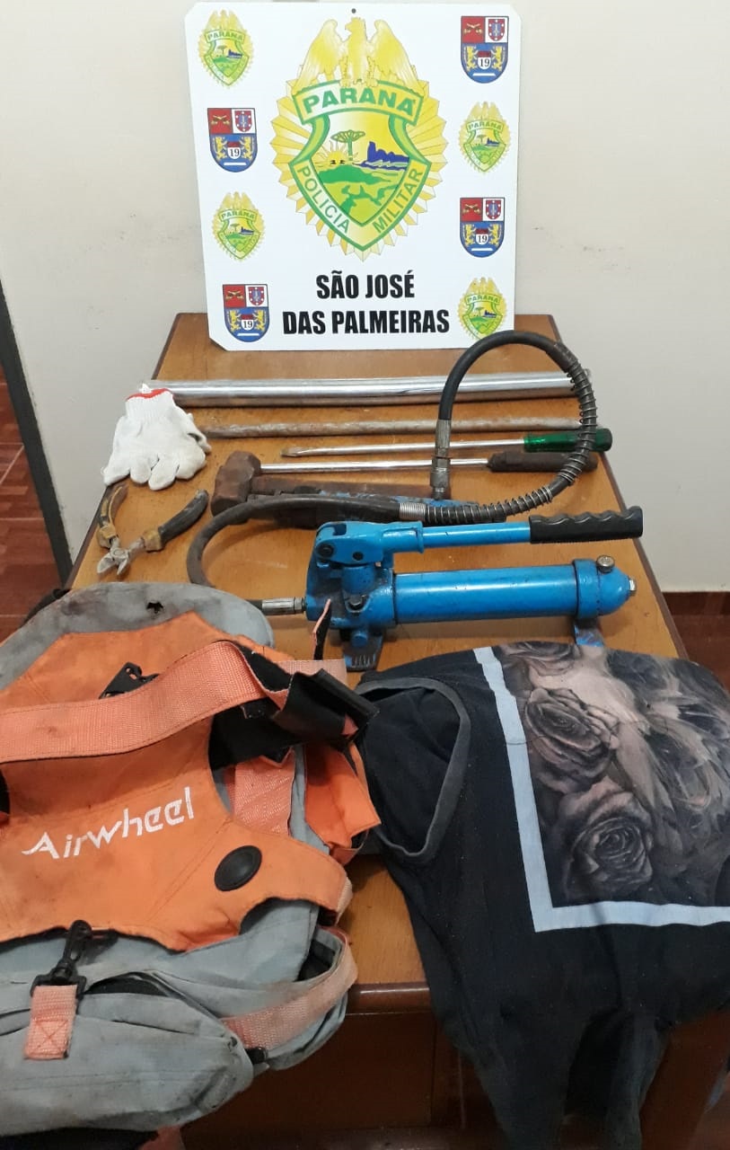 constataram danos em uma das paredes. Foram encontradas ferramentas que foram