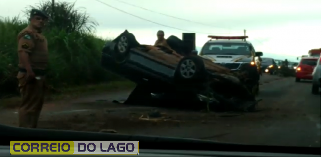 Veículo capota após colidir contra barranco na PR 495 em Missal