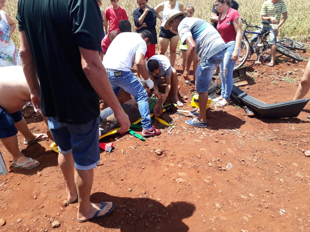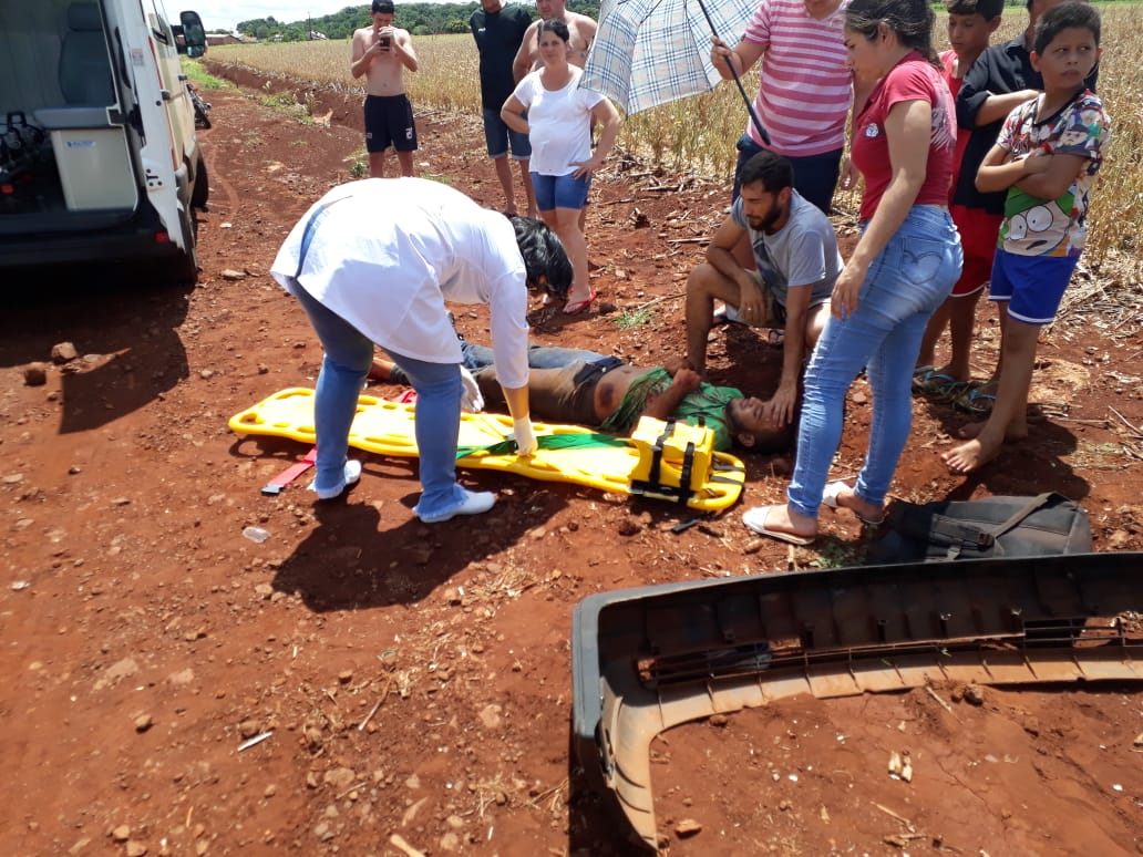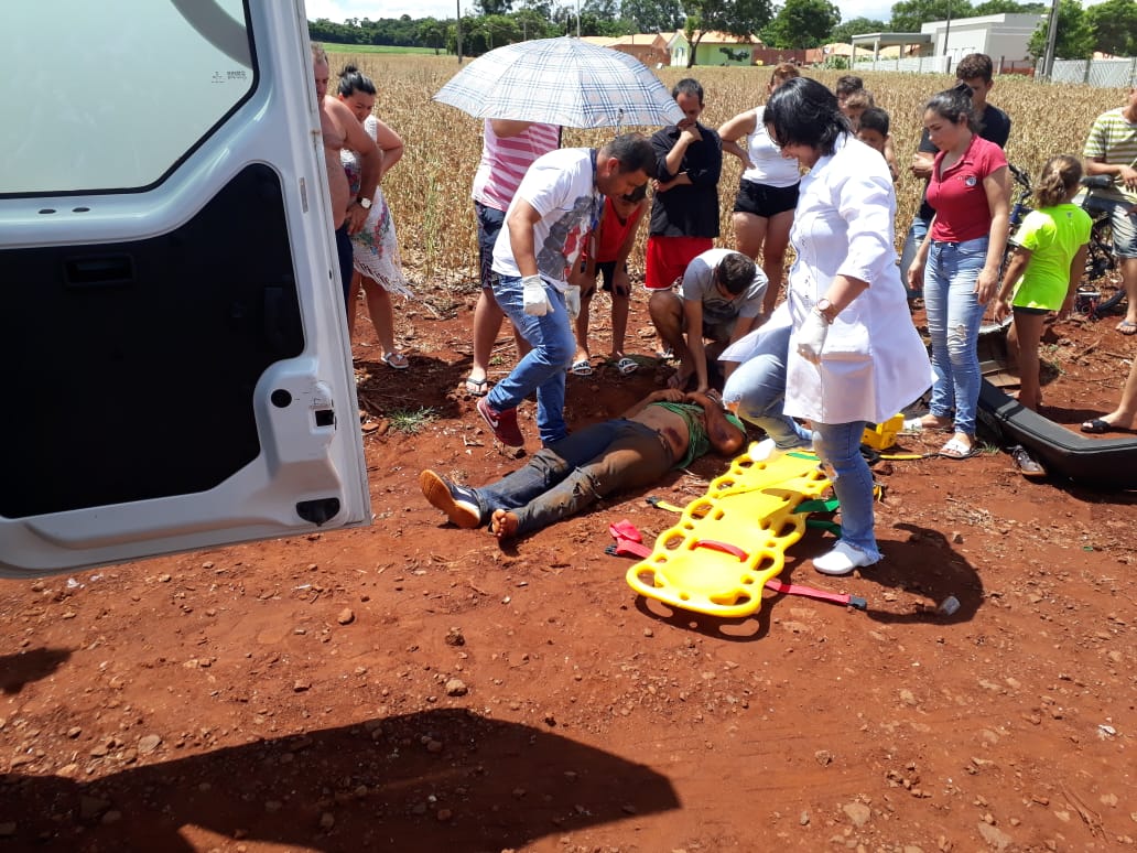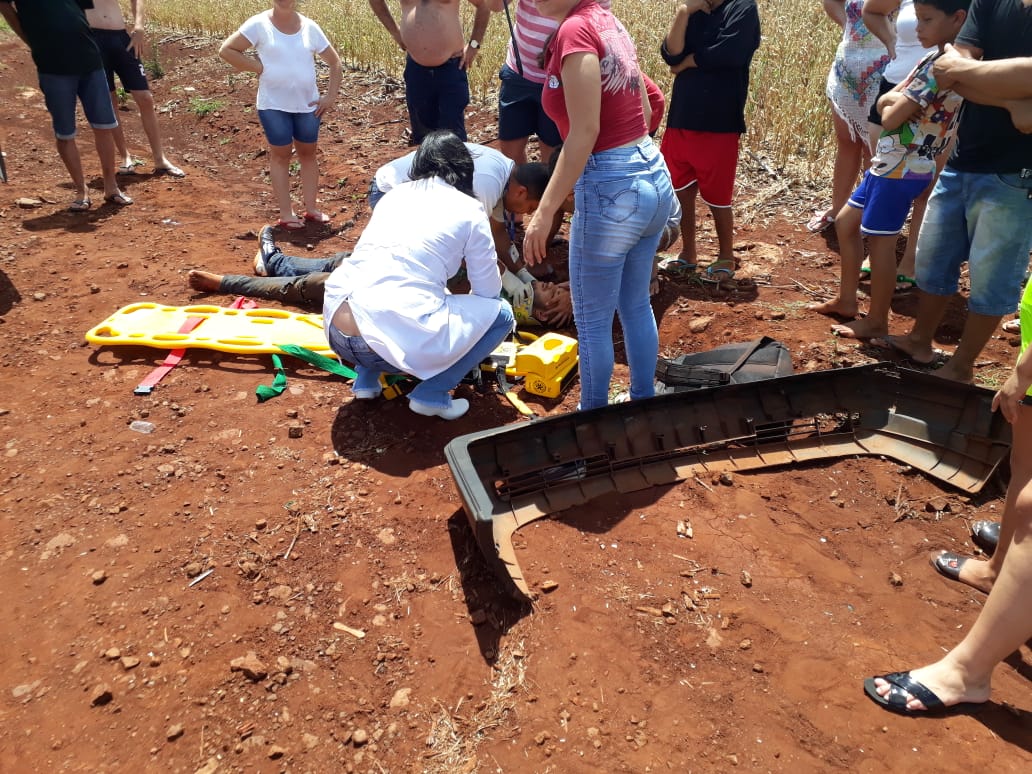 Um homem ficou ferido após cair de sua motocicleta por volta das 11:30 horas de hoje no perímetro urbano de Sub Sede. Segundo ele, um automóvel atravessou sua preferencial, na Rua Tapajós e ocasinou a queda. De acordo com populares, ele desviou do carro, perdeu o controle e acabou caindo, não sendo possível identificar o modelo do automóvel.