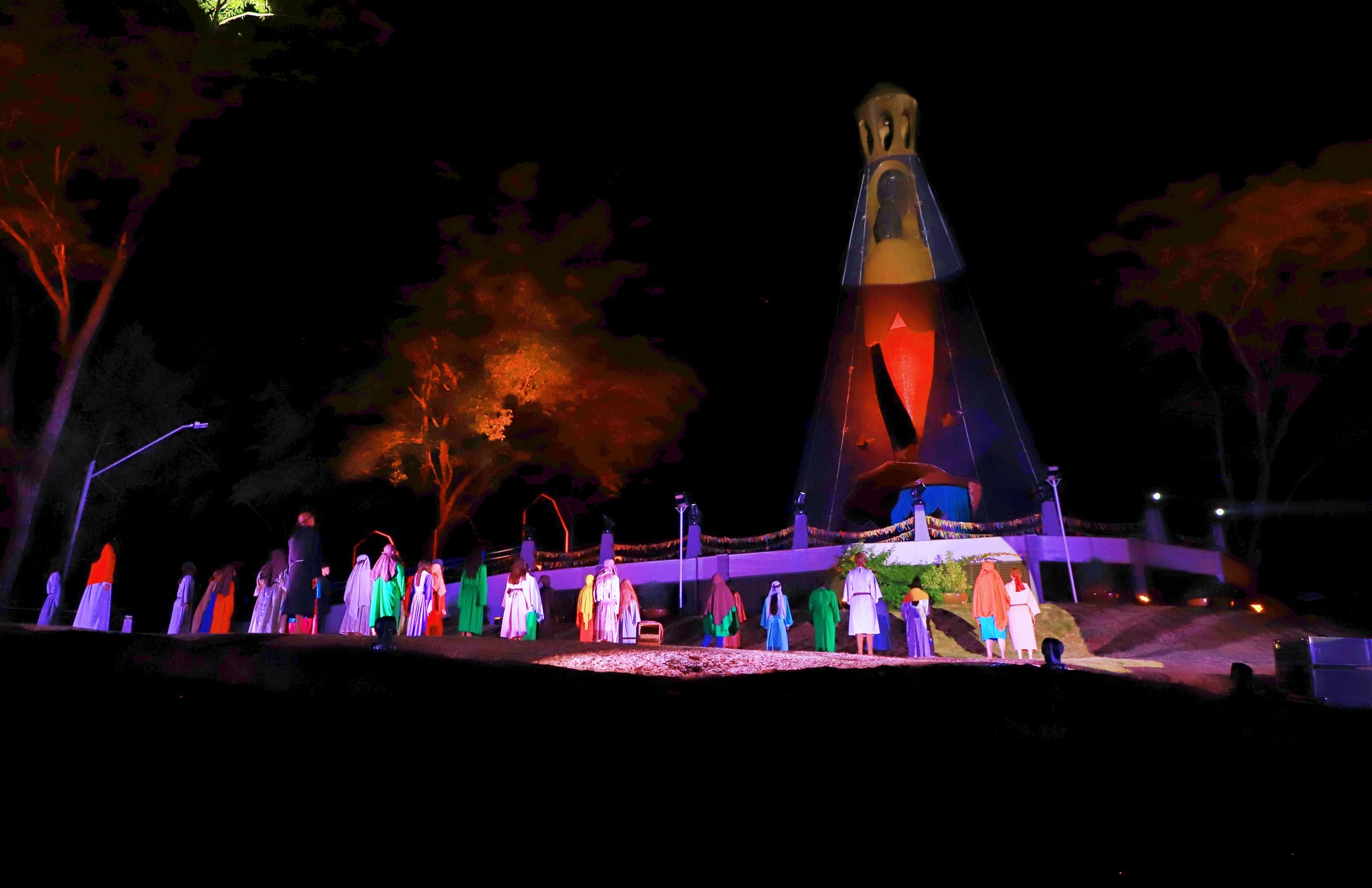 pontos altos da encenação do auto da Paixão de Cristo junto ao monumento de