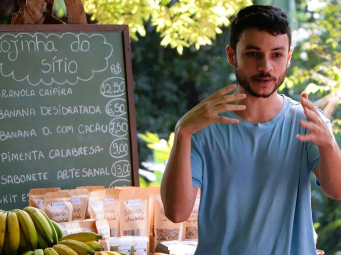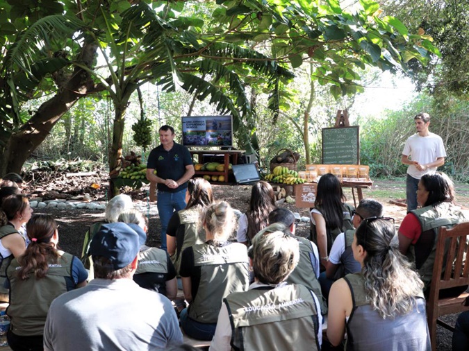 Durante a visita ao Sítio Ecos da Agrofloresta, em São Roque