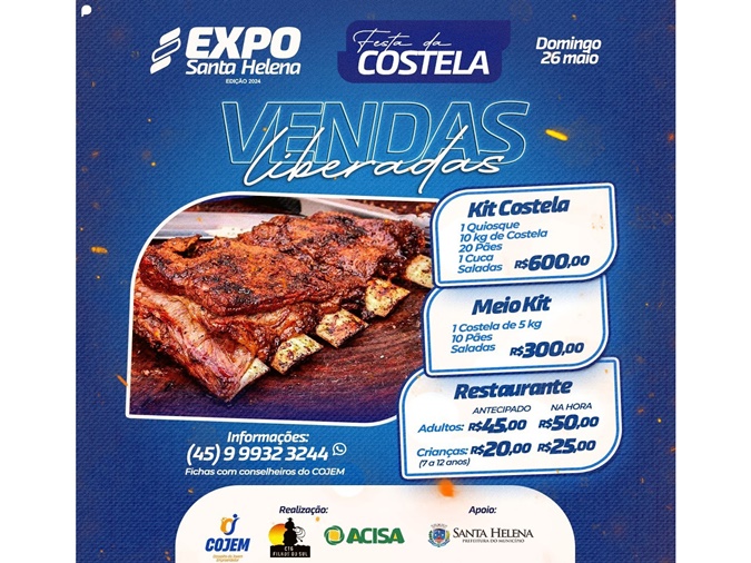 acontece a tradicional Feijoada do Rotary e a Festa da Costela no domingo, dia