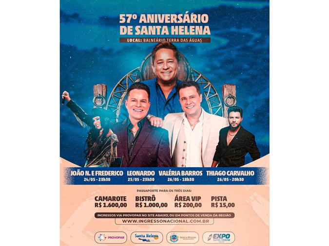 da Expo Santa Helena. No dia 24 tem show de João Neto e Frederico e no sábado,
