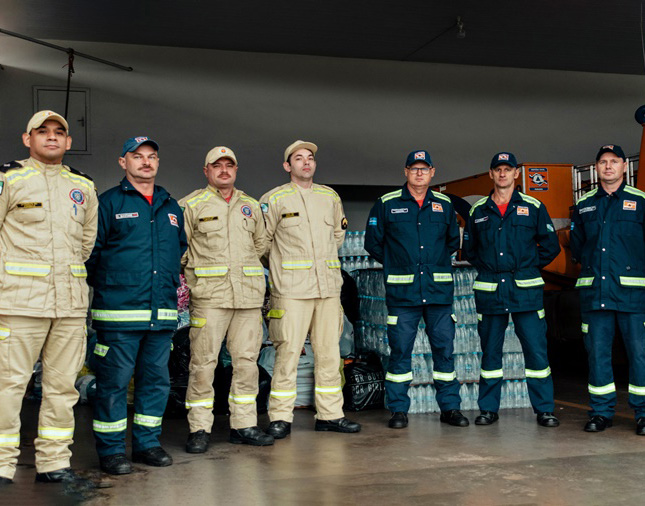 três caminhões lotados de itens de primeira necessidade para o estado gaúcho.